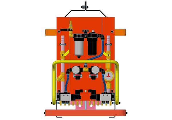 3、焊机的水气路系统装有单拉杆水气路系统开关,以供随时随地更换电极、电缆和焊枪时使用。同时装有特制的水流指示器和用于排污的过滤器,以供随时观察水路系统的工作状态和及时排污。