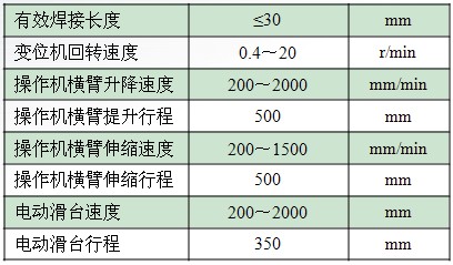 主要特点: 1.该堆焊专机是一台适用于板料双内孔面堆焊的专用设备。由变位机、精密操作机、控制系统、焊接电源等几大部分组成,各系统之间通过电缆连接成一个有机的整体,便于设备的安装和检修。 2.由用户自备的KBK滑轨机械手进行装卸工件,动力卡盘定心,人工手动压紧工件。通过变位机回转与操作机两轴联动,焊枪自动寻找轨迹完成一内孔堆焊过程;堆焊一内孔后自动换位至另一内孔完成另一内孔的堆焊过程。主要技术参数: