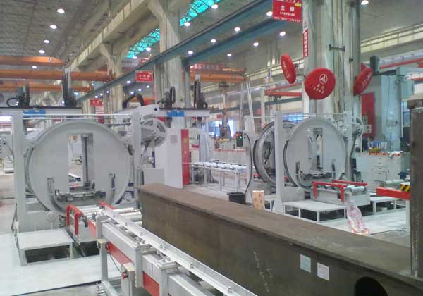 1.前支腿梁变位传输焊接生产线是一条专用于泵车前支腿梁焊缝、小件配焊等的专用成套设备。采用双驱环形滚轮架方式+从动同步端移动方式+分段动力输送线布局方式,布局合理,方便快捷、经济适用。