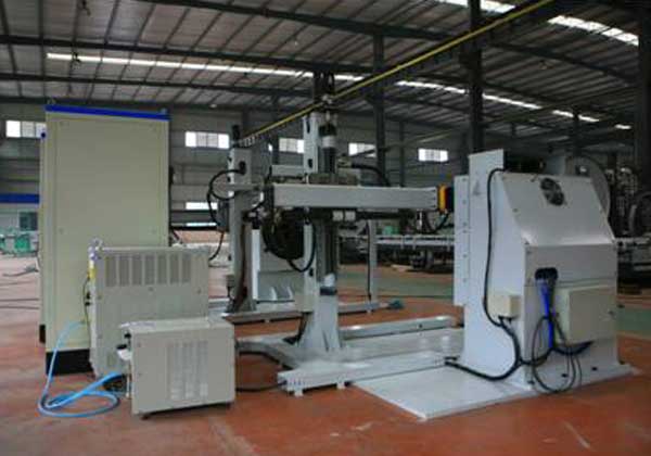 主要特点: 1.该堆焊专机是一台适用于板料双内孔面堆焊的专用设备。由变位机、精密操作机、控制系统、焊接电源等几大部分组成,各系统之间通过电缆连接成一个有机的整体,便于设备的安装和检修。 2.由用户自备的KBK滑轨机械手进行装卸工件,动力卡盘定心,人工手动压紧工件。通过变位机回转与操作机两轴联动,焊枪自动寻找轨迹完成一内孔堆焊过程;堆焊一内孔后自动换位至另一内孔完成另一内孔的堆焊过程。主要技术参数: