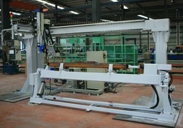 1.该专机是一台适用于车载泵付车架横梁直缝焊接的专用设备。采用龙门架式悬臂结构+工件变位机布局,布局合理,方便快捷、经济适用。